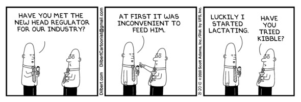Here’s a zoom on the CEO. He has a tiny regulator in his pocket. Try to imagine that the CEO’s shirt has a trap door in the back of the pocket so the regulator can turn around and get a snack whenever he wants. It’s efficient.